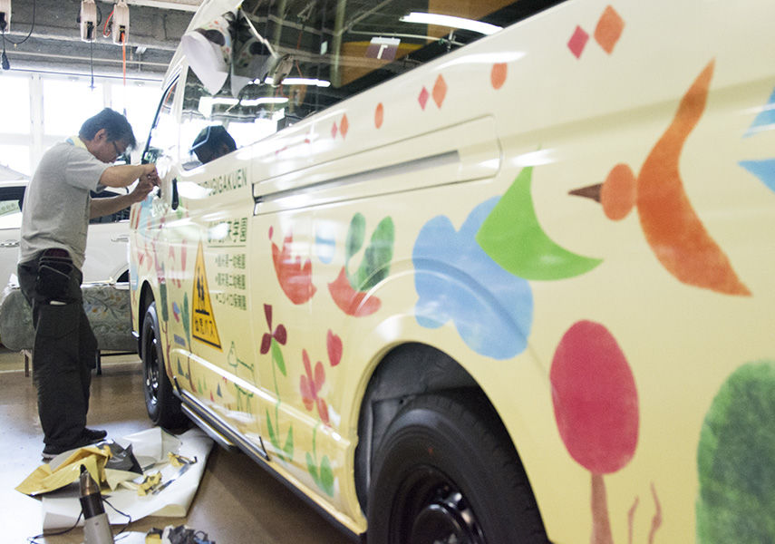 鶴来第一幼稚園・鶴来第二幼稚園・ニジイロ保育園のバスのフルラッピングを担当しました。